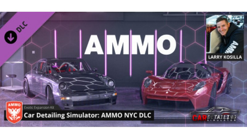 DescriptionCar Detailing Simulator - AMMO NYC DLC allows you to detail exotic cars in Larry Kosilla's custom AMMO Detailing Studio with access to all AMMO products and tools. The DLC is an exact model of the real AMMO NYC Studio. Even the pictures on the wall are identical! As the detailer, you will have full access to walk around the entire AMMO Studio, kitchen, refrigerator, airplane-bathroom, full exercise gym, editing and podcast suite (and film your own YouTube videos within the game, just like Larry) to run your exotic car detailing business and be the best detailer you can be. Click the DLC link to unlock the best detailing studio and the rarest cars in the world!